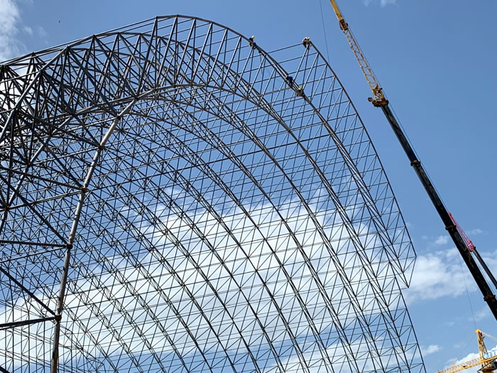 (2)网架加工前应对现场尺寸进行复测,确认无误后方可进行加工、安装;网架制作、运输、安装应遵守《空间网格结构技术规程》JGJ7-2010、《钢网架永州螺栓球节点》JG/T 10-2009、《钢网架永州螺栓球节点用高强度螺栓》 GB/T 16939-2016、《永州钢结构永州工程永州施工规范》 GB50755-2012、《永州钢结构永州工程永州施工质量验收标准》 GB50205-2020。